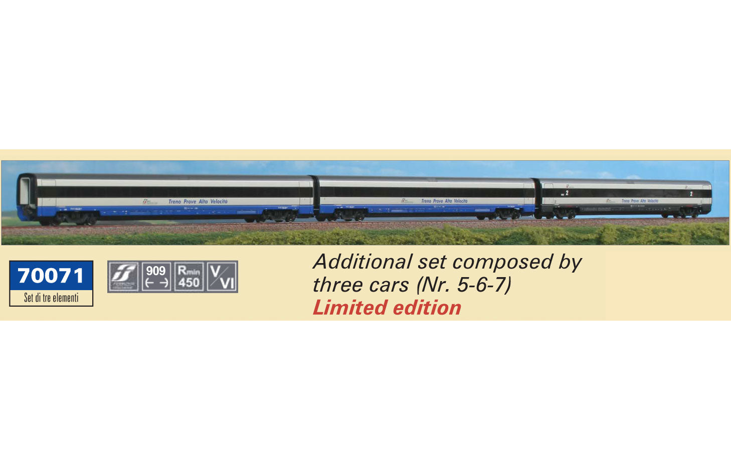 This is a 3 cars add-on set for the ACME Treno Prove Alta Velocita di RFI set - item 70070
