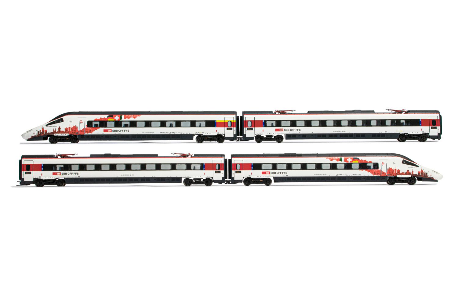 SBB, 4-unit base set EMU class RABe 503 in white livery, contains 2 powerheads (only one of them powered) and 2 intermediate coaches, period VI