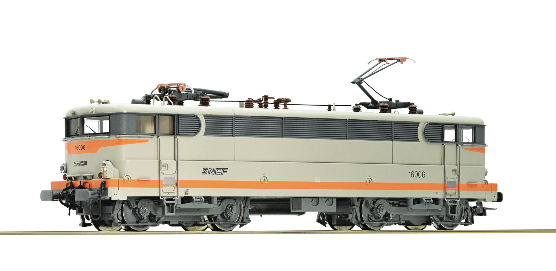 Electric locomotive BB 16000 of the French State Railways, epoch V. Motor with flywheel. Drive on four axles. One axle is equipped with traction tyres. NEM 652 Interface for the adaptation of digital decoders. Coupler pocket according to NEM 362 standards and close coupling mechanism. White/red triple LED headlights that change with the direction of travel.